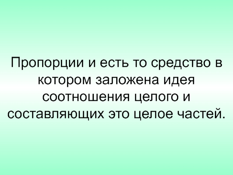 Пропорции и есть то средство в котором заложена идея соотношения целого и составляющих это целое частей.