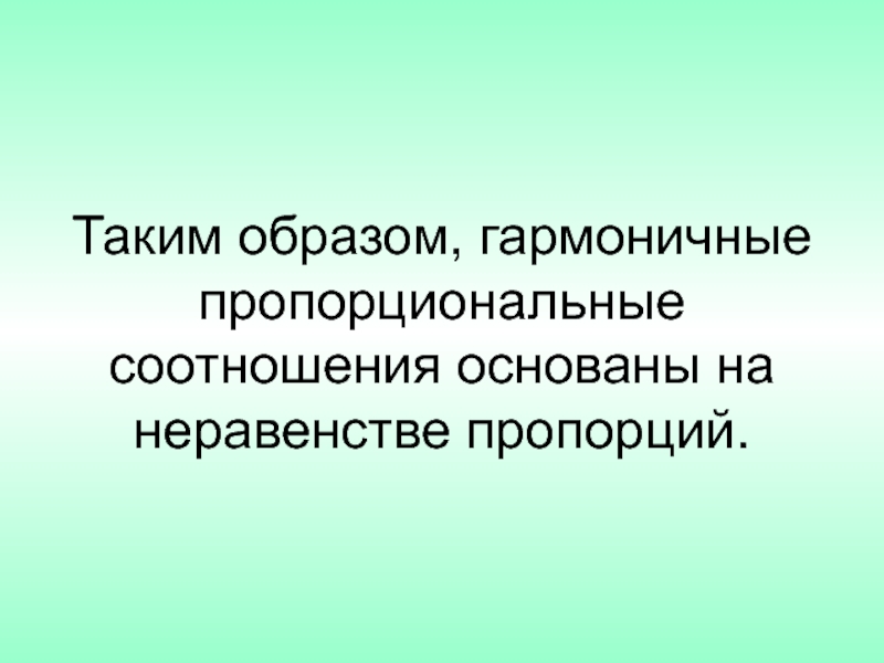 Слайд 23Таким образом, гармоничные пропорциональные соотношения основаны на неравенстве пропорций.