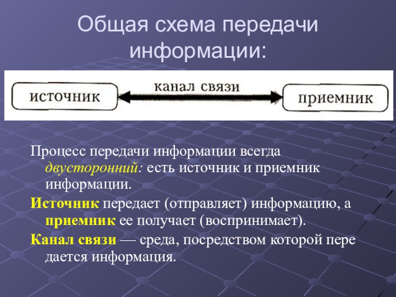 (воспринимает).Канал связи — среда, посредством которой передается информация.
