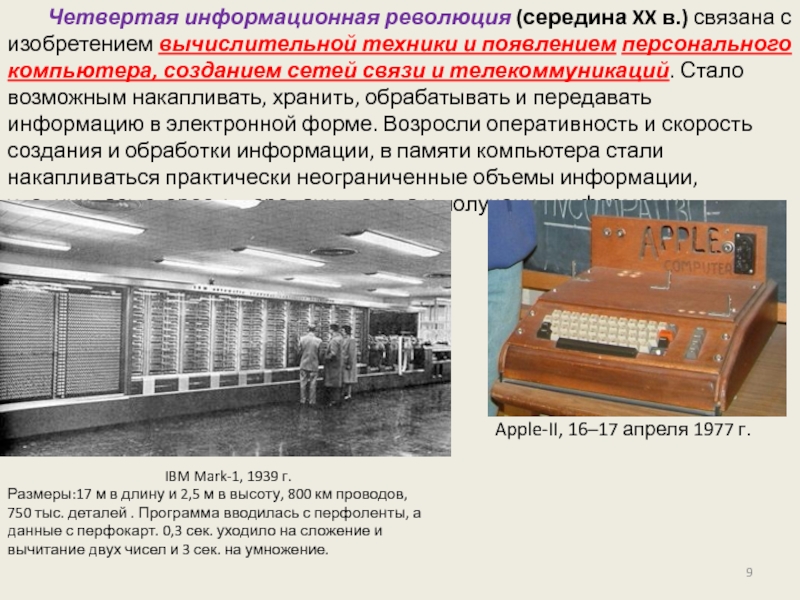 Слайд 9Четвертая информационная революция (середина XX в.) связана с изобретением вычислительной