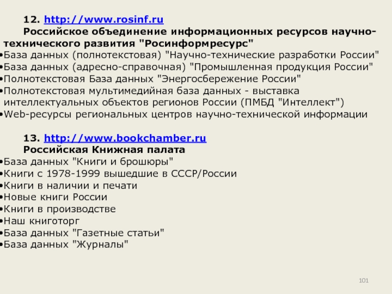 Слайд 10112. http://www.rosinf.ru
