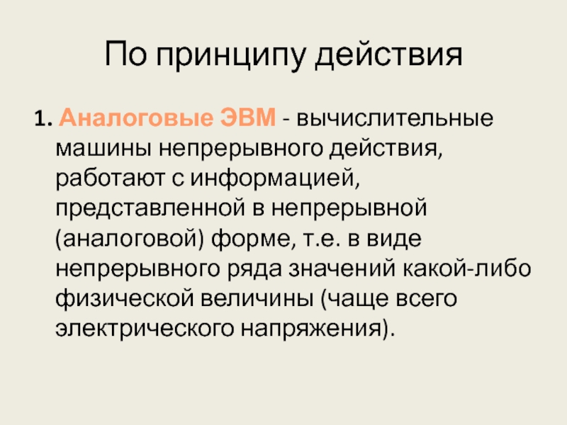 1. Аналоговые ЭВМ - вычислительные машины непрерывного действия,