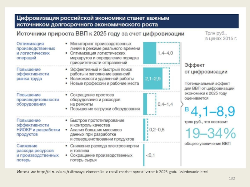 Слайд 132Источник: http://d-russia.ru/tsifrovaya-ekonomika-v-rossii-mozhet-vyrasti-vtroe-k-2025-godu-issledovanie.html