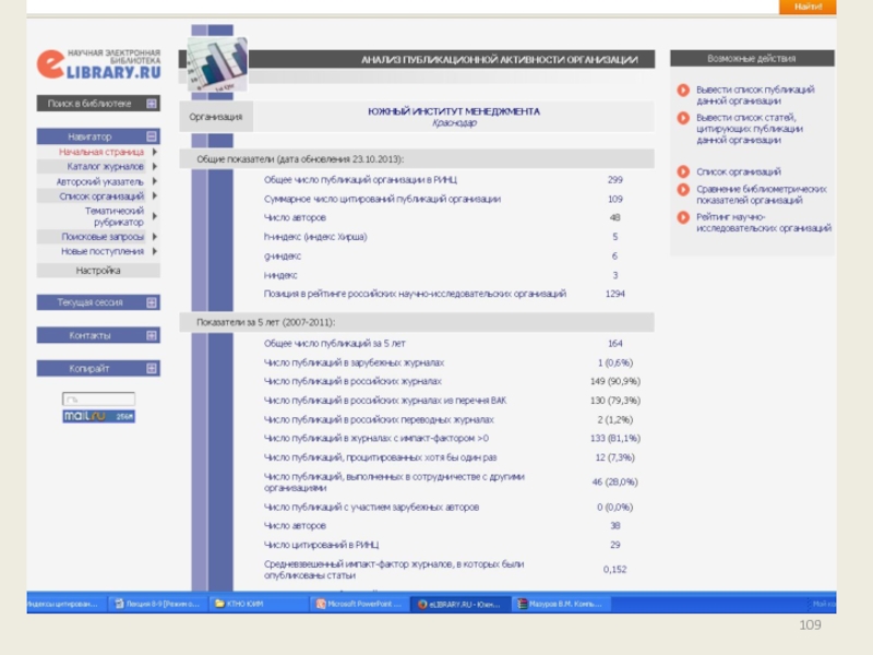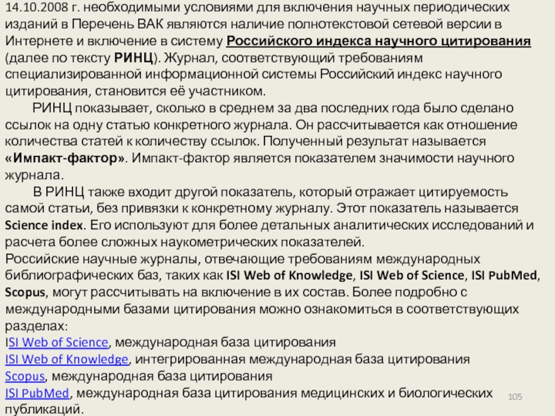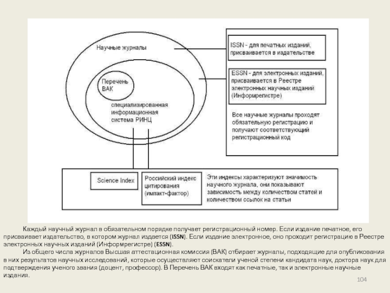 Слайд 104Каждый научный журнал в обязательном порядке получает регистрационный номер. Если