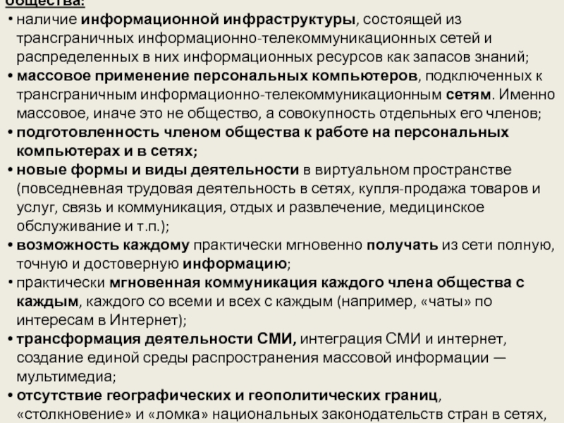 особенности информационного общества.