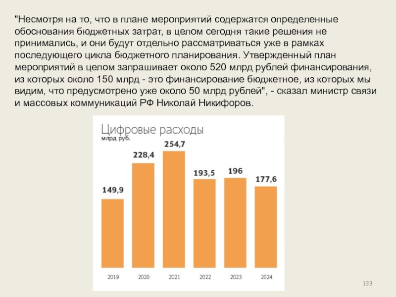 Слайд 133"Несмотря на то, что в плане мероприятий содержатся определенные обоснования