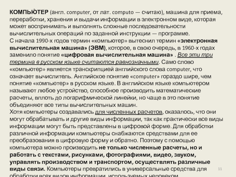 Слайд 11КОМПЬЮ́ТЕР (англ. computer, от лат. computo — считаю), машина для