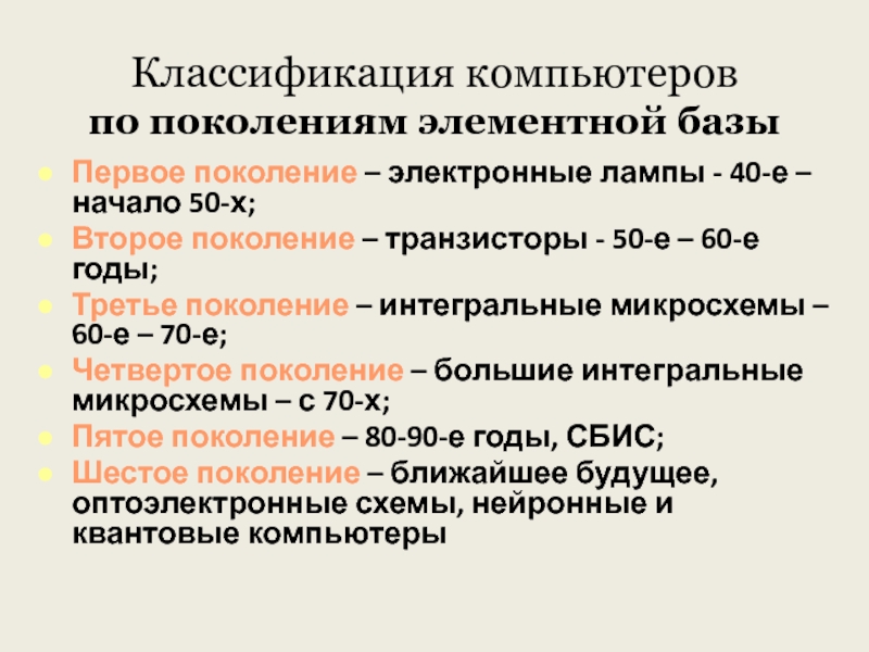 по поколениям элементной базы