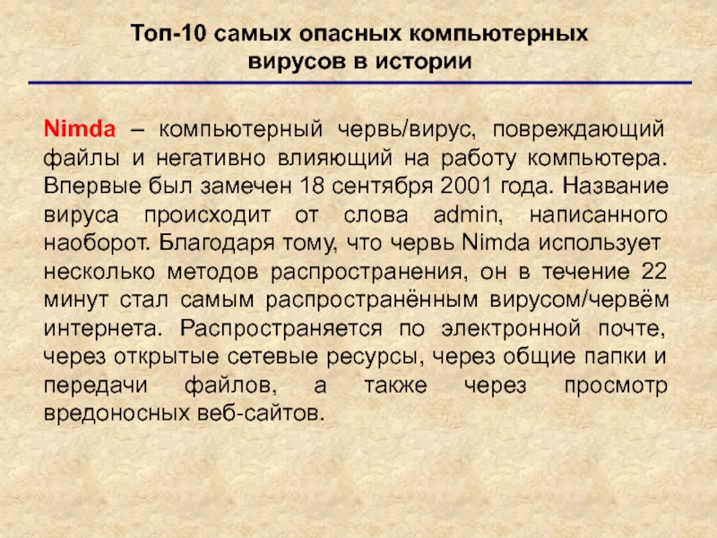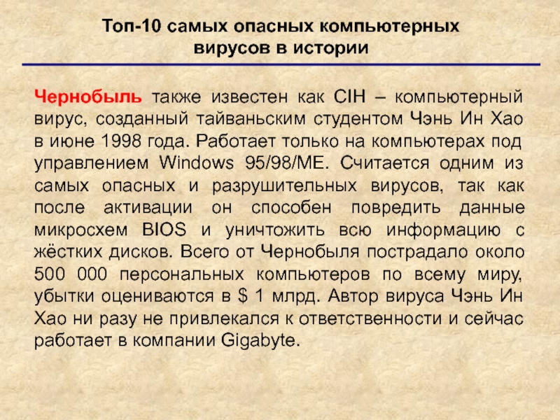 Слайд 39Топ-10 самых опасных компьютерных вирусов в истории