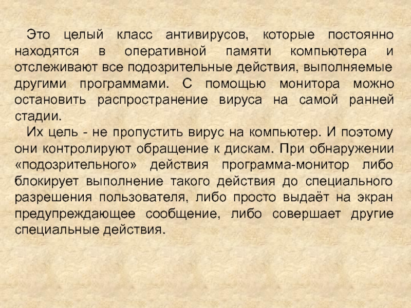 Слайд 25Это целый класс антивирусов, которые постоянно находятся в оперативной памяти