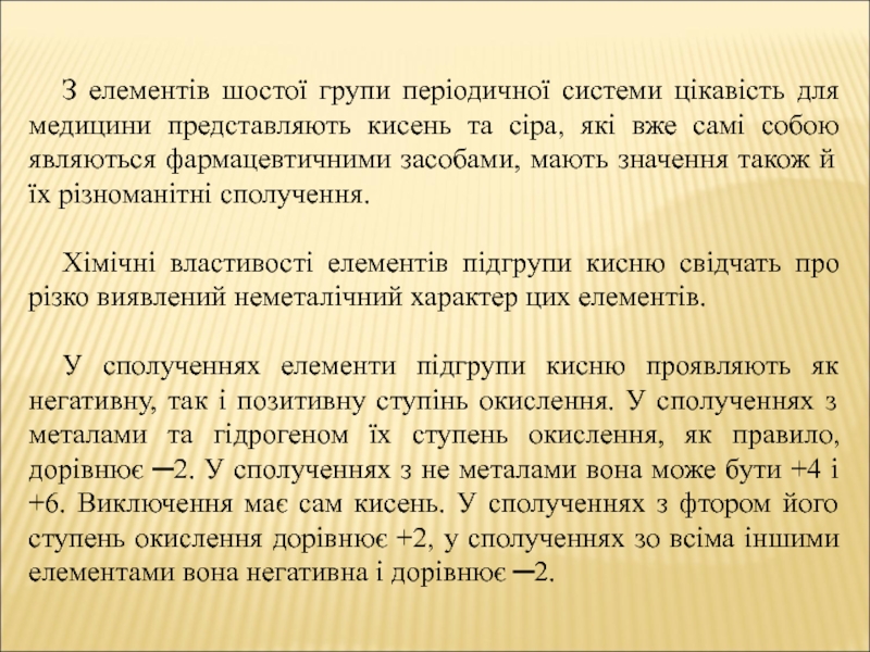 Хімічні властивості елементів підгрупи кисню свідчать про різко виявлений неметалічний характер цих елементів.