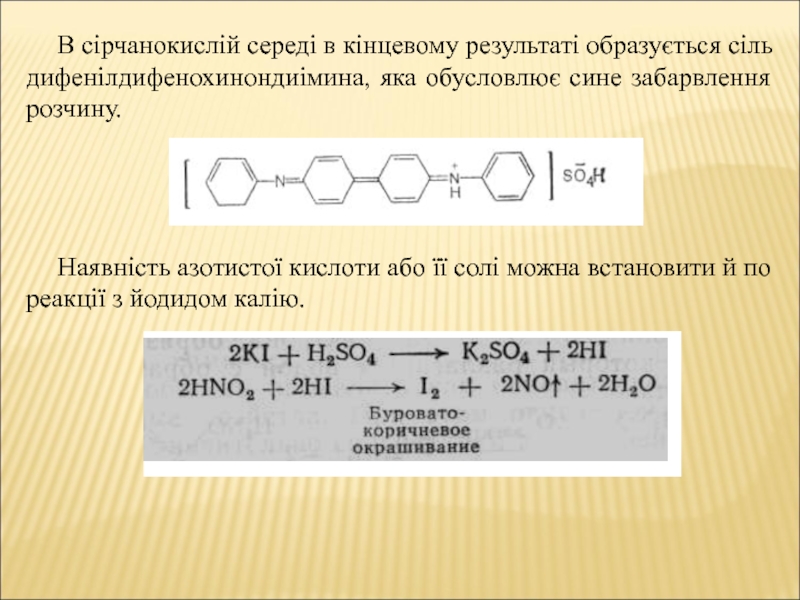 Слайд 7В сірчанокислій середі в кінцевому результаті образується сіль дифенілдифенохинондиімина, яка