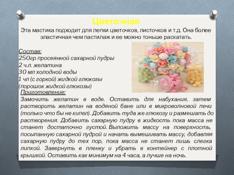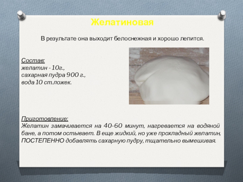Шаг 8: Мастика готова. Ее можно раскатать на подпыленной пудрой доске и вырезать высечками или ножом различные фигурки или лепить из нее руками.