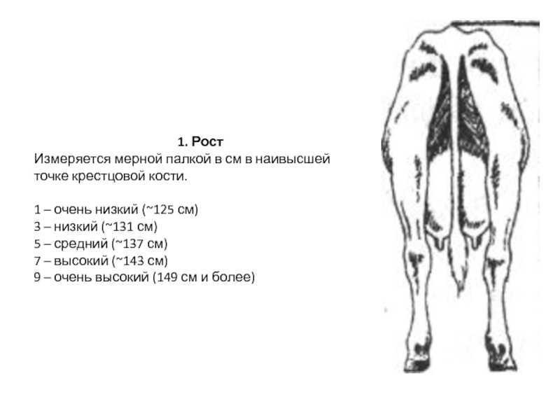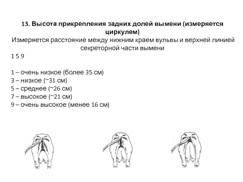 Слайд 2313. Высота прикрепления задних долей вымени (измеряется циркулем)