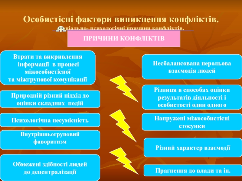 Слайд 13Суб'єктивні причини конфліктів