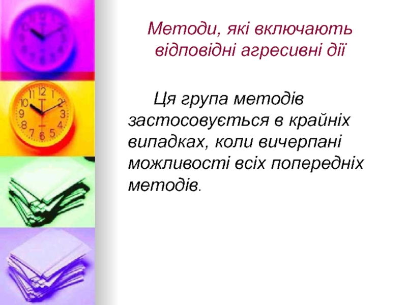 Слайд 35Методи, які включають відповідні агресивні дії