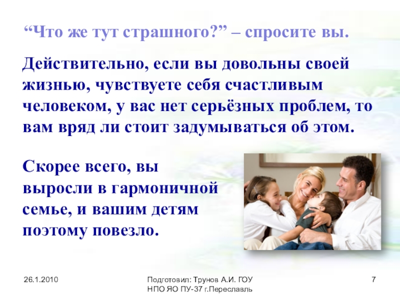 Скорее всего, вы выросли в гармоничной семье, и вашим детям поэтому повезло.