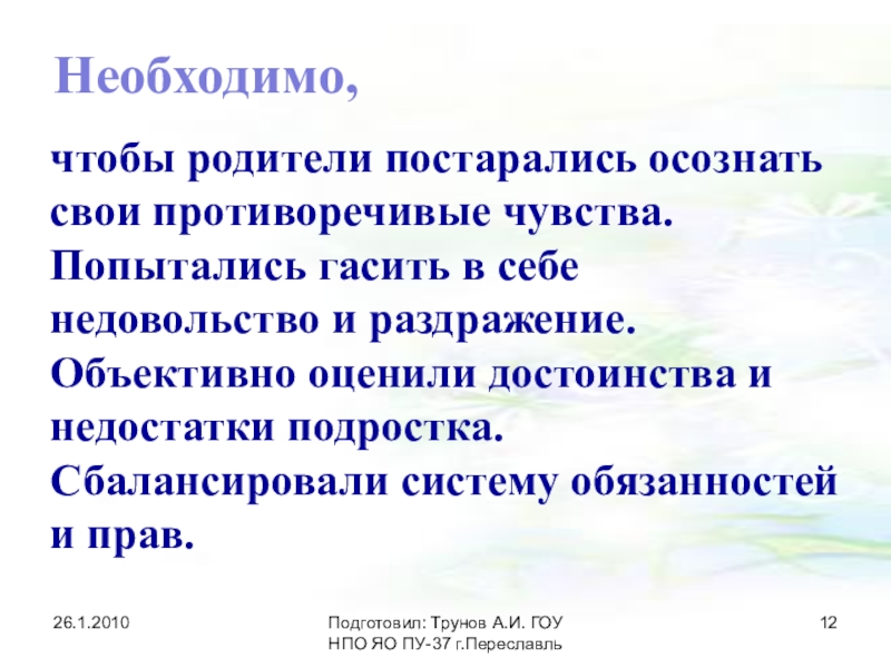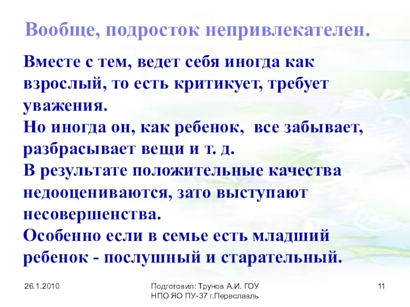 Подготовил: Трунов А.И. ГОУ НПО ЯО ПУ-37 г.Переславль