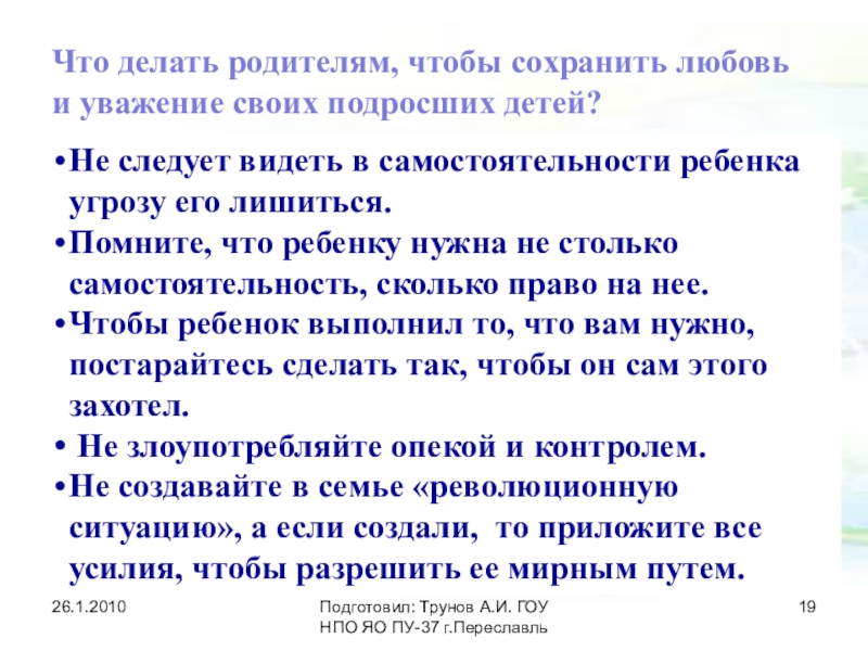 Слайд 19Что делать родителям, чтобы сохранить любовь и уважение своих подросших