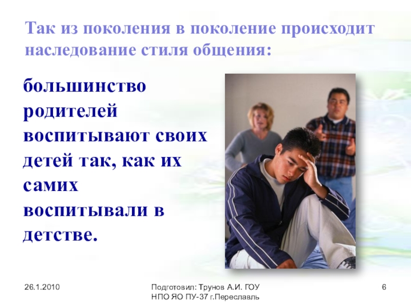 Слайд 6Так из поколения в поколение происходит наследование стиля общения: