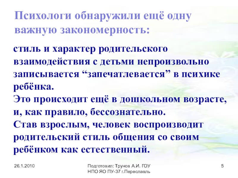 стиль и характер родительского взаимодействия с детьми непроизвольно