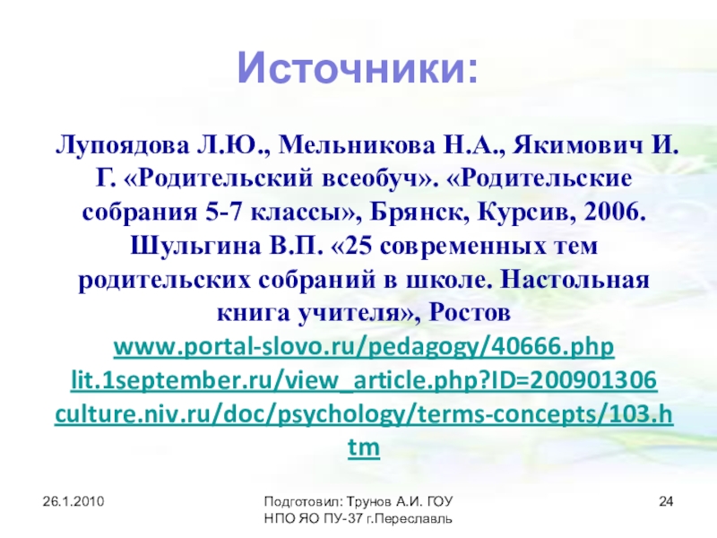 Трунов А.И. ГОУ НПО ЯО ПУ-37 г.Переславль