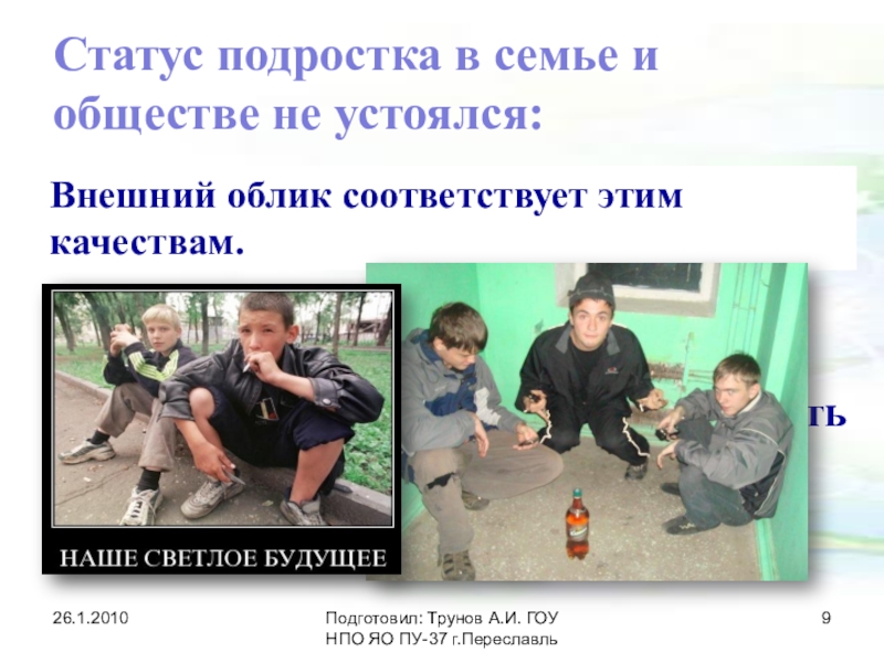 Слайд 9Статус подростка в семье и обществе не устоялся: