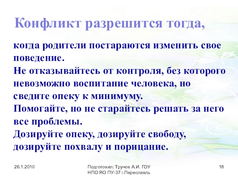 Дозируйте опеку, дозируйте свободу, дозируйте похвалу и порицание.