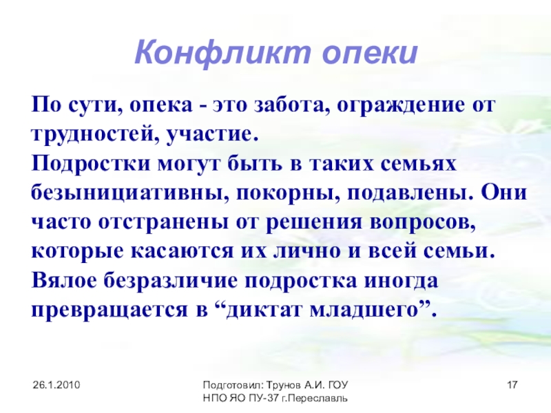 быть в таких семьях безынициативны, покорны, подавлены. Они часто отстранены от решения вопросов, которые касаются их лично и всей семьи.