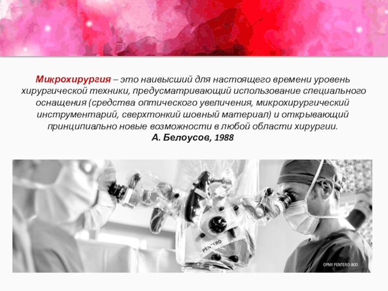 шовный материал) и открывающий принципиально новые возможности в любой области хирургии.А. Белоусов, 1988