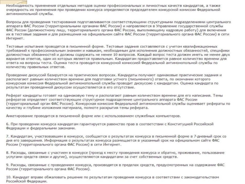 Методика проведения конкурса на замещение вакантной должности федеральной государственной гражданской службы в ФАС России.