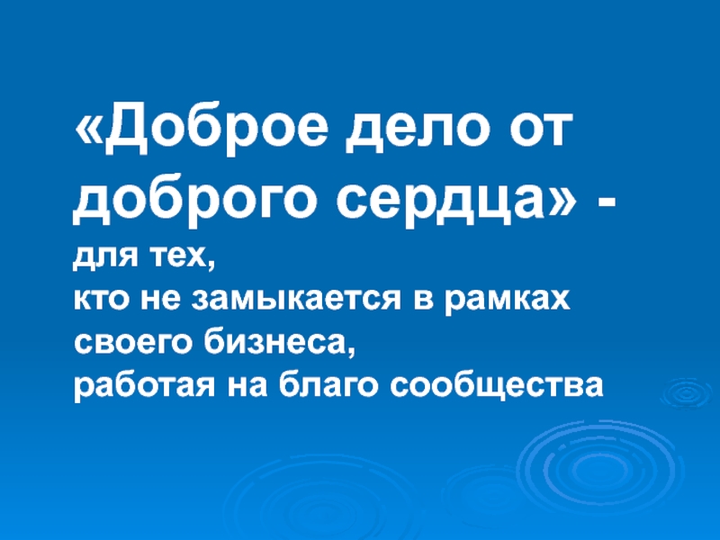 «Доброе дело от доброго сердца» - для тех, кто не замыкается в рамках своего бизнеса, работая на