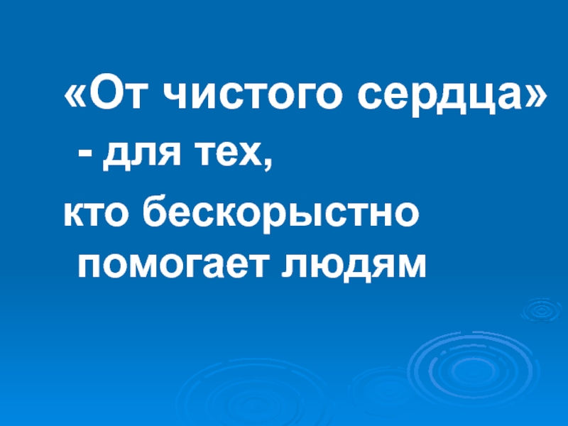 «От чистого сердца» - для тех, кто бескорыстно помогает людям
