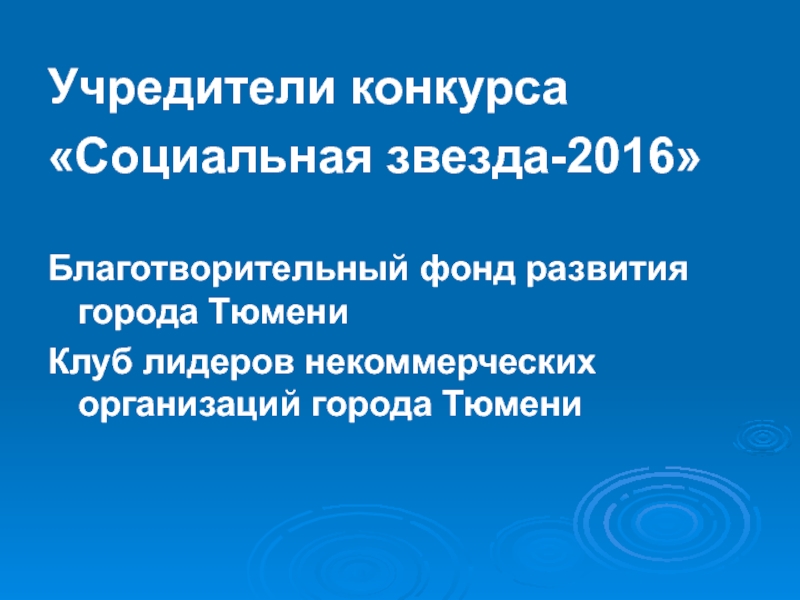 Учредители конкурса «Социальная звезда-2016»Благотворительный фонд развития города ТюмениКлуб лидеров некоммерческих организаций города Тюмени