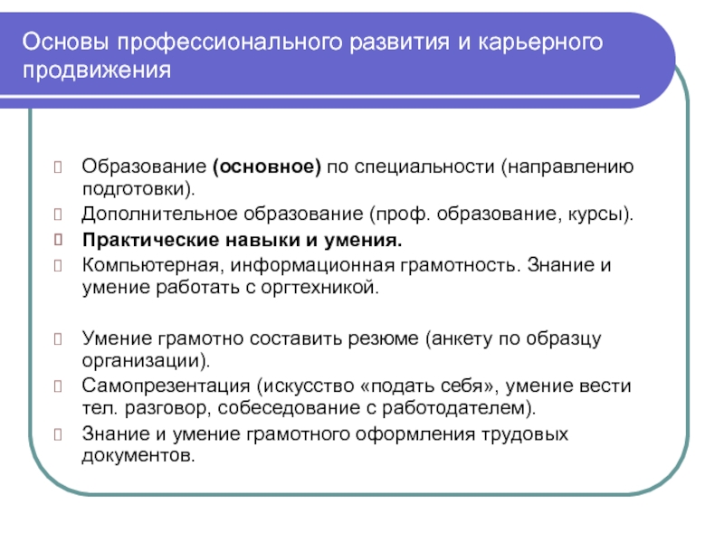 Слайд 5Основы профессионального развития и карьерного продвижения