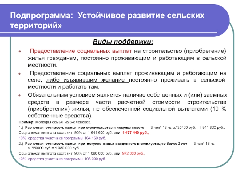Слайд 13Подпрограмма: Устойчивое развитие сельских территорий»