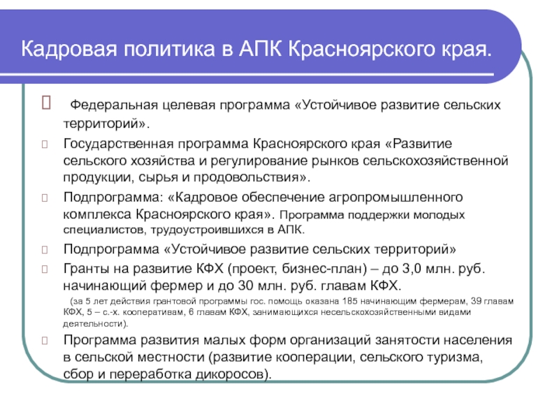 Слайд 9Кадровая политика в АПК Красноярского края.