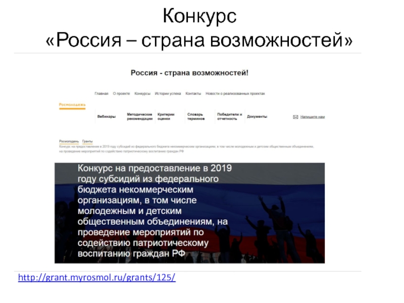 Конкурс  «Россия – страна возможностей»http://grant.myrosmol.ru/grants/125/