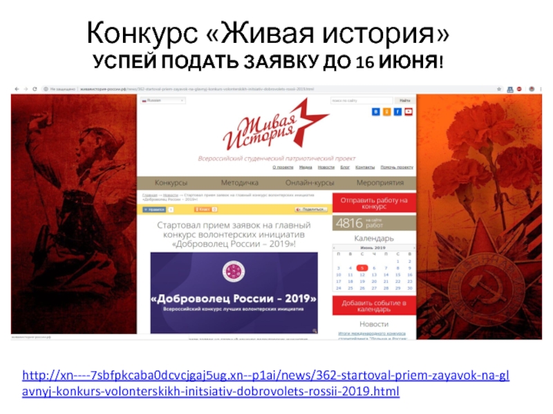 Слайд 20 Конкурс «Живая история» УСПЕЙ ПОДАТЬ ЗАЯВКУ ДО 16 ИЮНЯ!