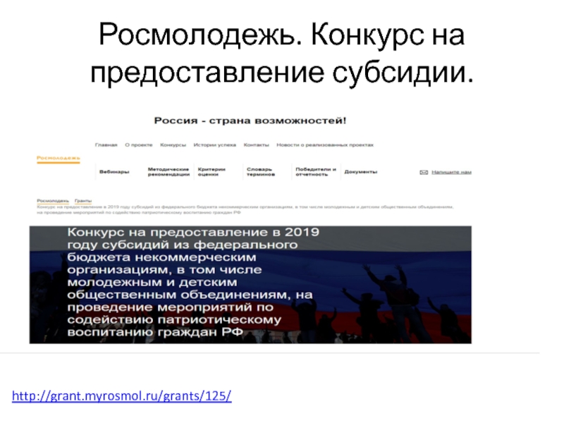 Слайд 6Росмолодежь. Конкурс на предоставление субсидии.
