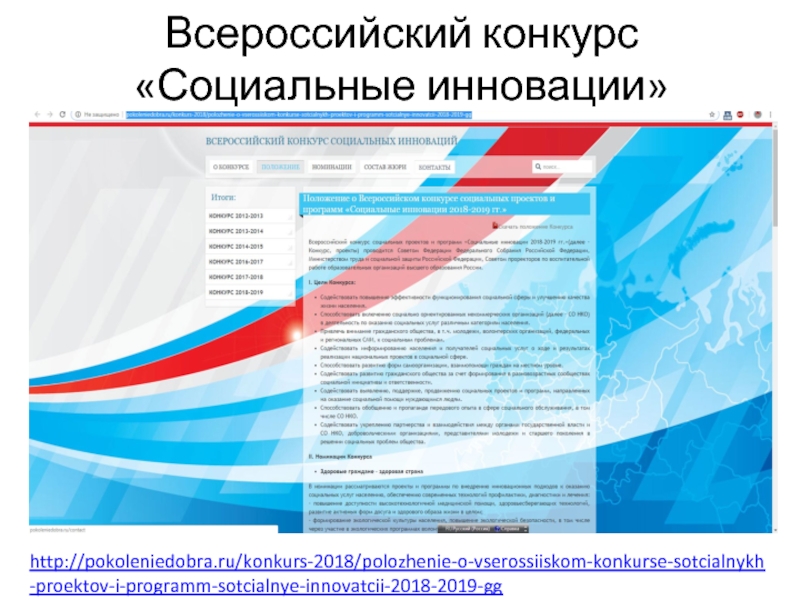 http://pokoleniedobra.ru/konkurs-2018/polozhenie-o-vserossiiskom-konkurse-sotcialnykh-proektov-i-programm-sotcialnye-innovatcii-2018-2019-gg