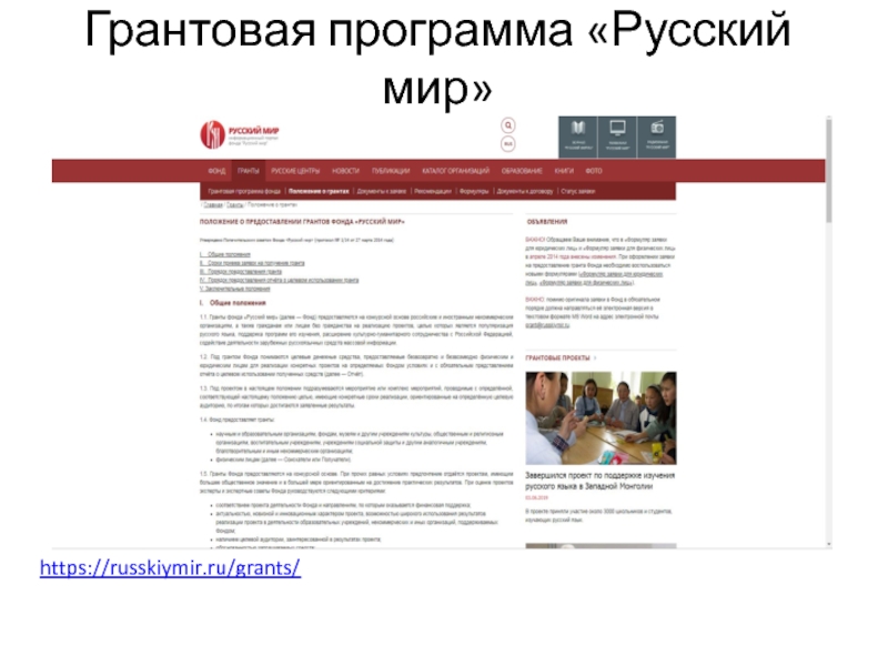 Грантовая программа «Русский мир»https://russkiymir.ru/grants/