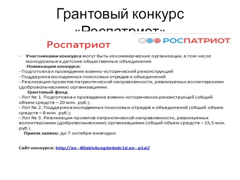 Слайд 1Конкурсы и гранты по патриотическому воспитанию.