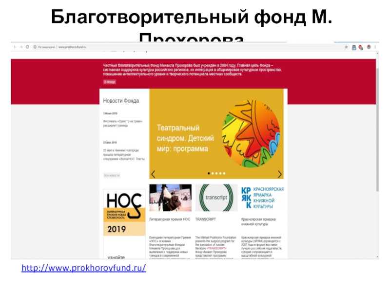 Благотворительный фонд М. Прохороваhttp://www.prokhorovfund.ru/