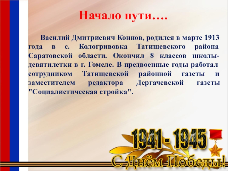 1913 года в с. Кологривовка Татищевского района Саратовской области. Окончил