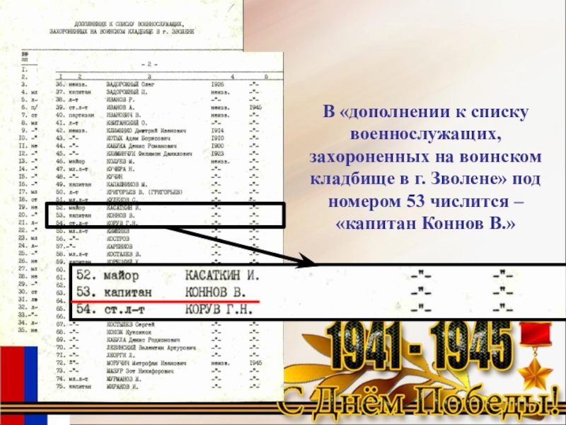 г. Зволене» под номером 53 числится – «капитан Коннов В.»