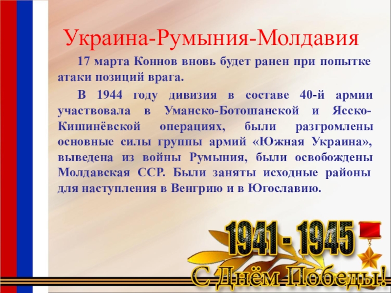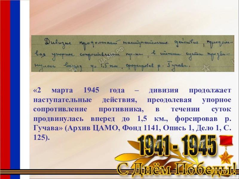 Слайд 17«2 марта 1945 года – дивизия продолжает наступательные действия, преодолевая