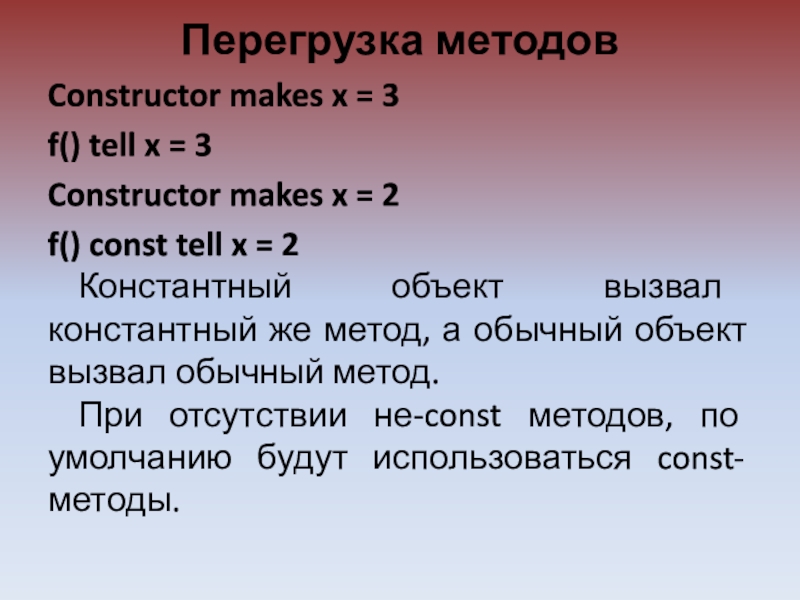 Перегрузка методов Constructor makes x = 3 f() tell x = 3 Constructor makes x = 2