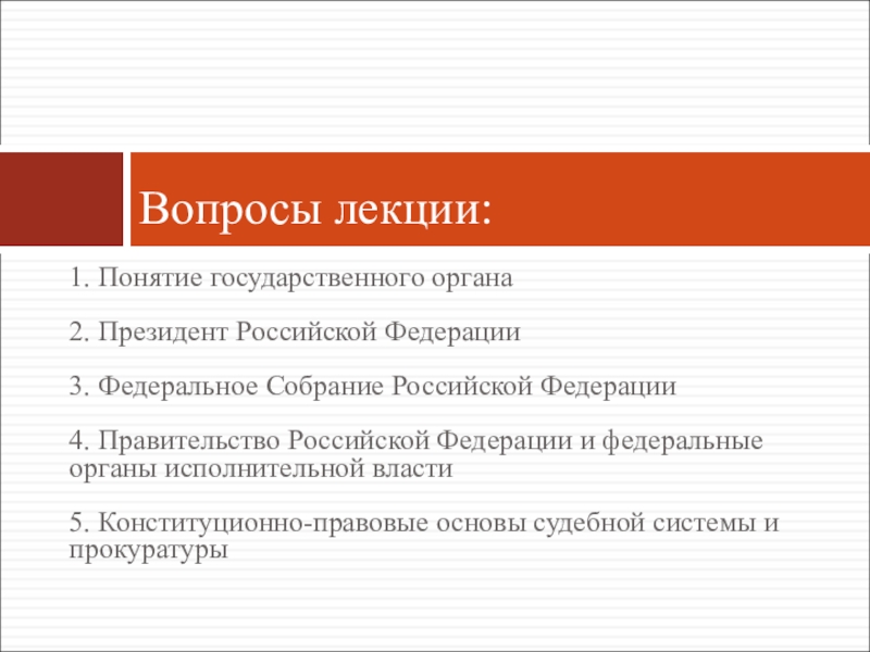 Федерации 4. Правительство Российской Федерации и федеральные органы исполнительной власти 5. Конституционно-правовые