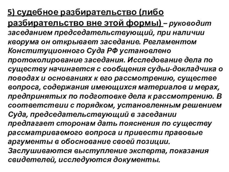 Слайд 155) судебное разбирательство (либо разбирательство вне этой формы) – руководит
